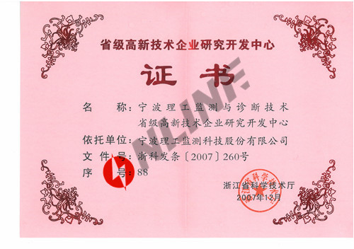 “寧波理工監測與診斷技術省級高新技術研究開發中心”列入浙江省高新技術企業研究開發中心