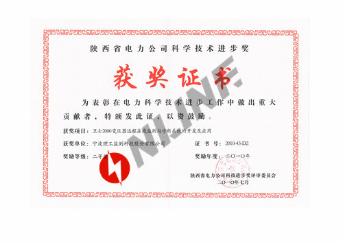 衛(wèi)士2000變壓器遠(yuǎn)程在線監(jiān)測與診斷系統(tǒng)的開發(fā)與應(yīng)用,獲陜西省電力公司科學(xué)技術(shù)進步獎二等獎