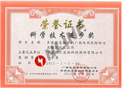 “多源信息融合的廣西電網風險防治關鍵技術及應用”獲廣西電網公司科學技術進步獎一等獎