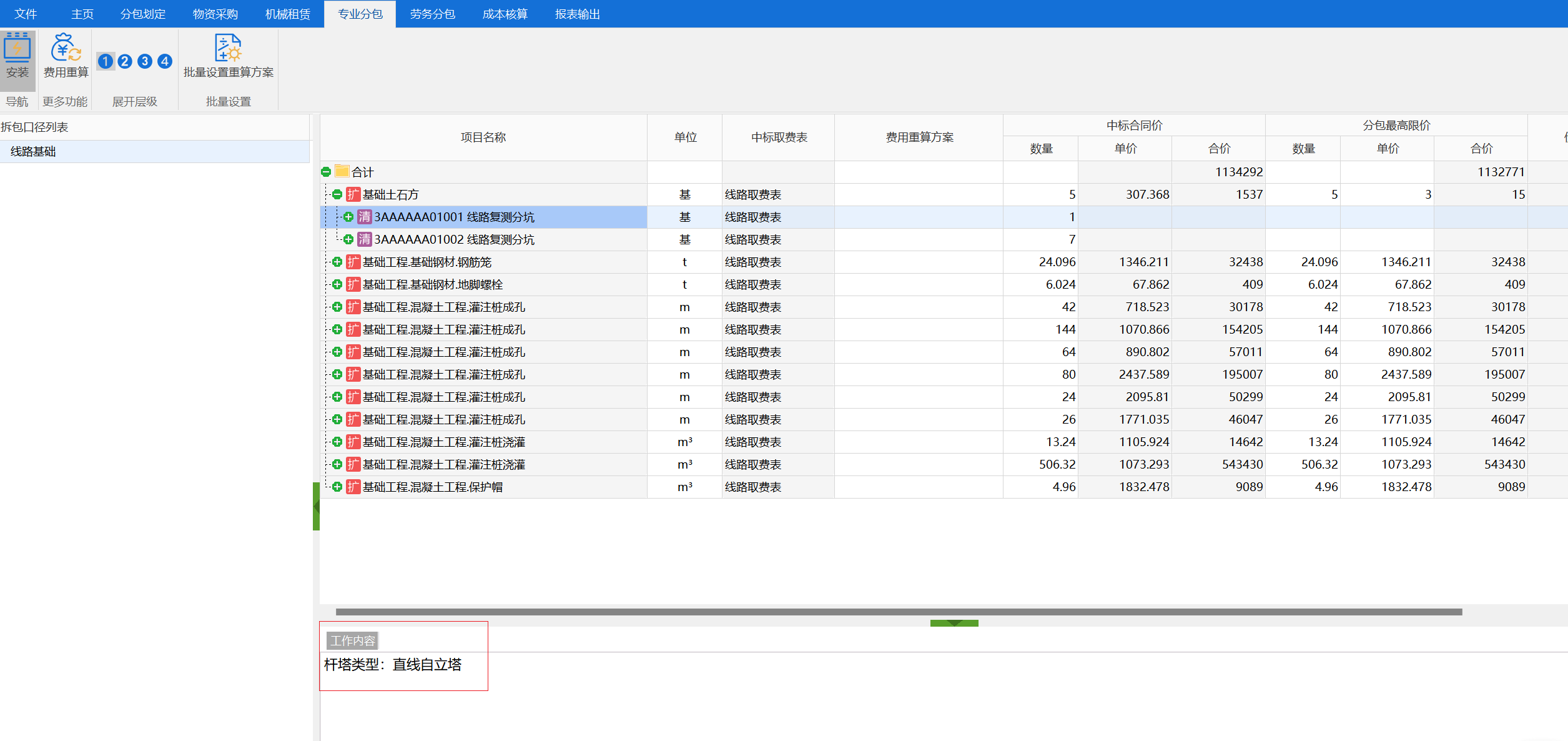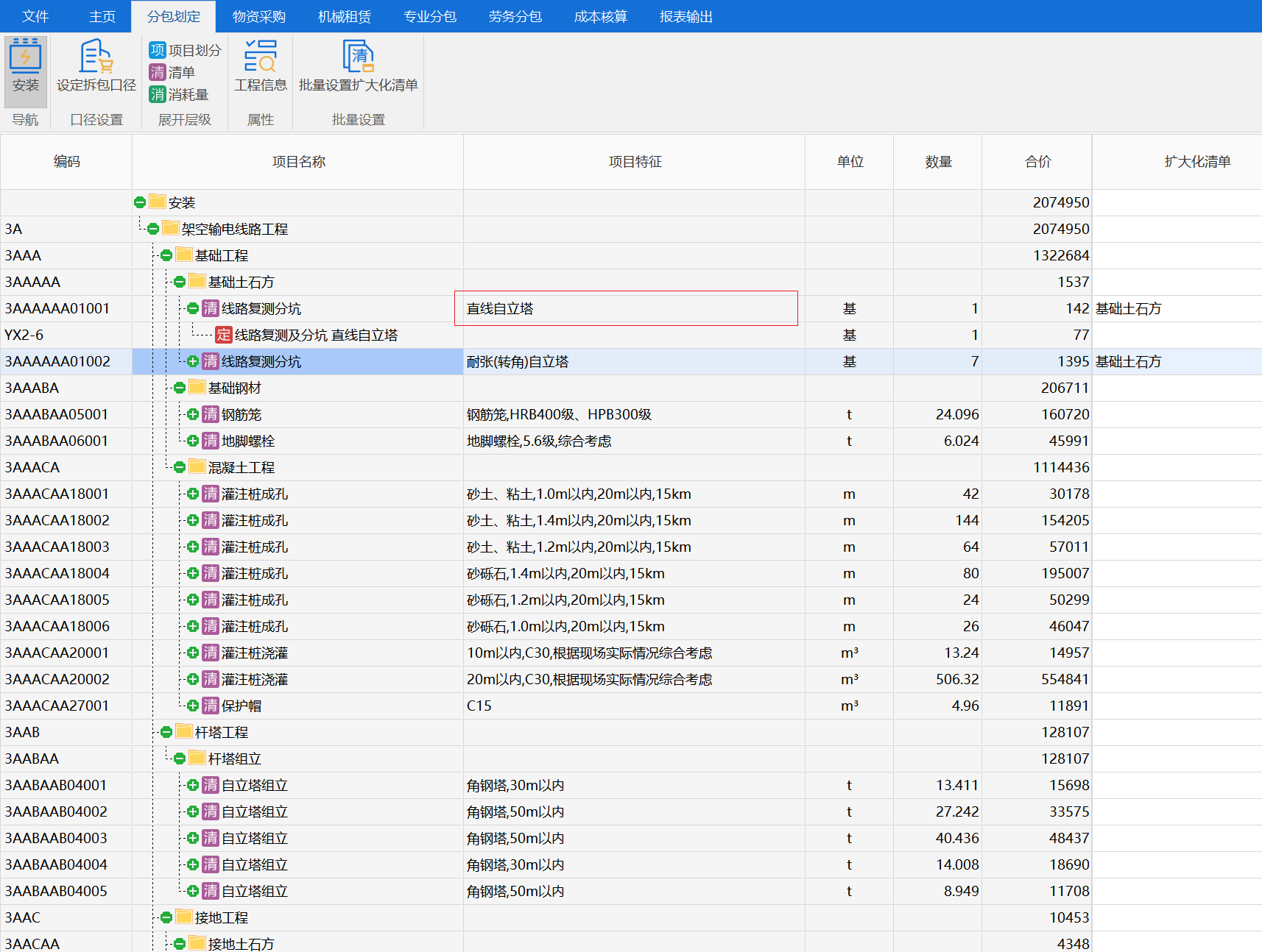 分包劃定界面清單可按項(xiàng)目特征進(jìn)行區(qū)分,支持分包商精細(xì)劃定。項(xiàng)目特征支持手動(dòng)修改并可在分包限價(jià)表中作為工作內(nèi)容展示,便于開(kāi)展分包招標(biāo)。