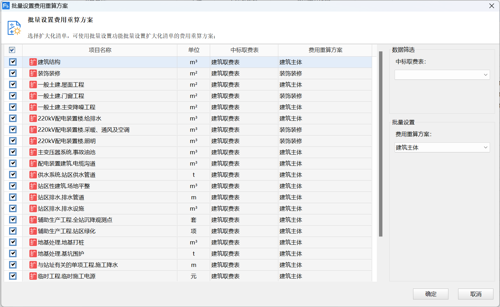 (1)專(zhuān)業(yè)分包、勞務(wù)分包界面支持按擴(kuò)大化清單批量設(shè)置費(fèi)用重算方案,提升分包限價(jià)編制效率。